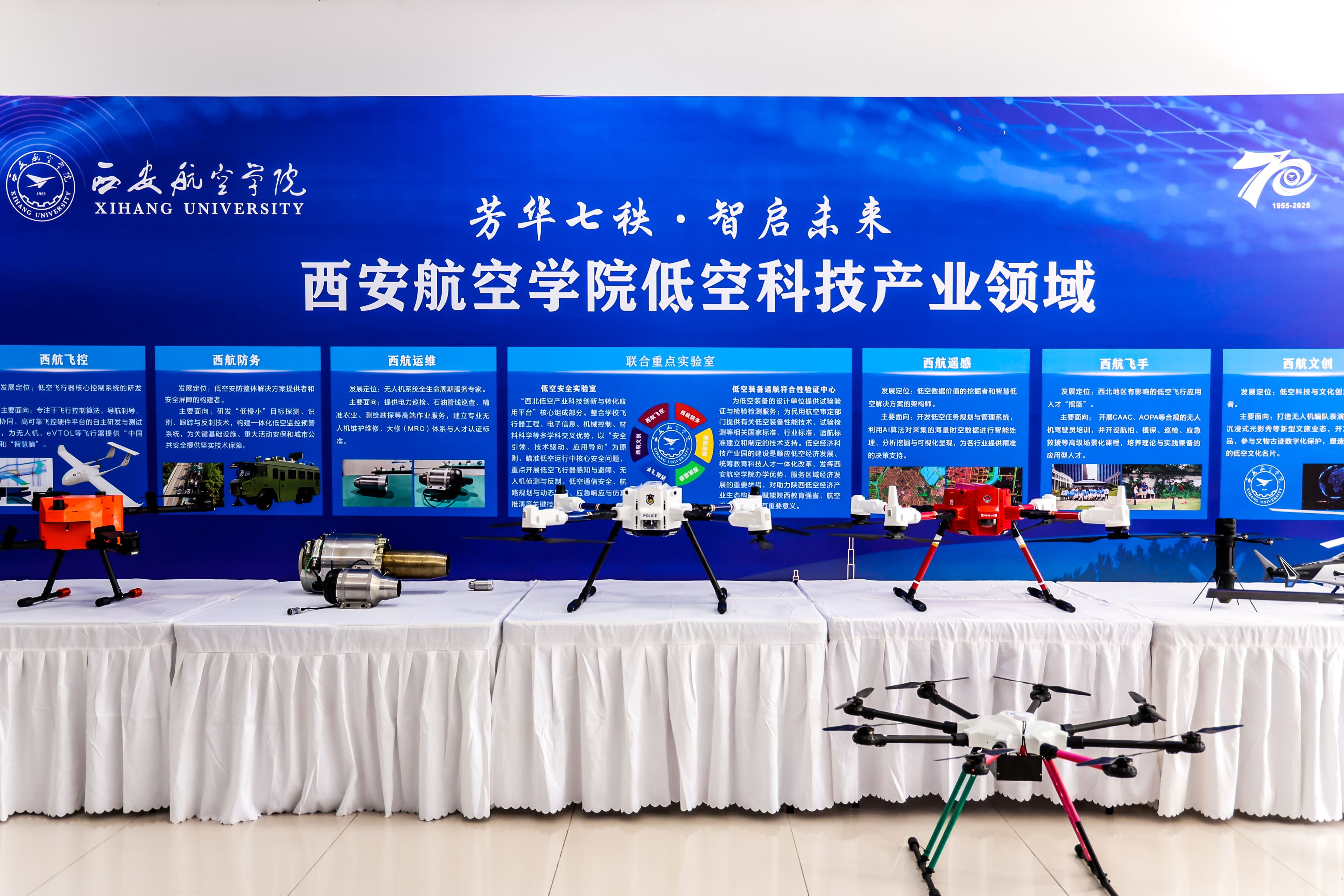 论坛外场同时进行了低空技术产品实物展,展示了我校西航运维、西航防务、西航飞手等品牌的多款无人机及飞控检测技术,吸引众多嘉宾驻足问询、现场交流。